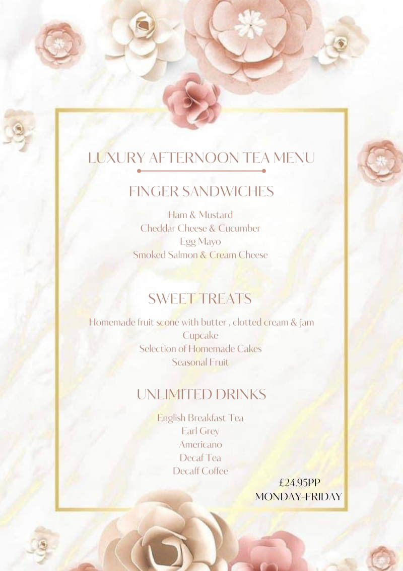 LUXURY AFTERNOON TEA GIFT VOUCHERS AVAILABLE ~ CALL FOR DETAILS or see Gift voucher page